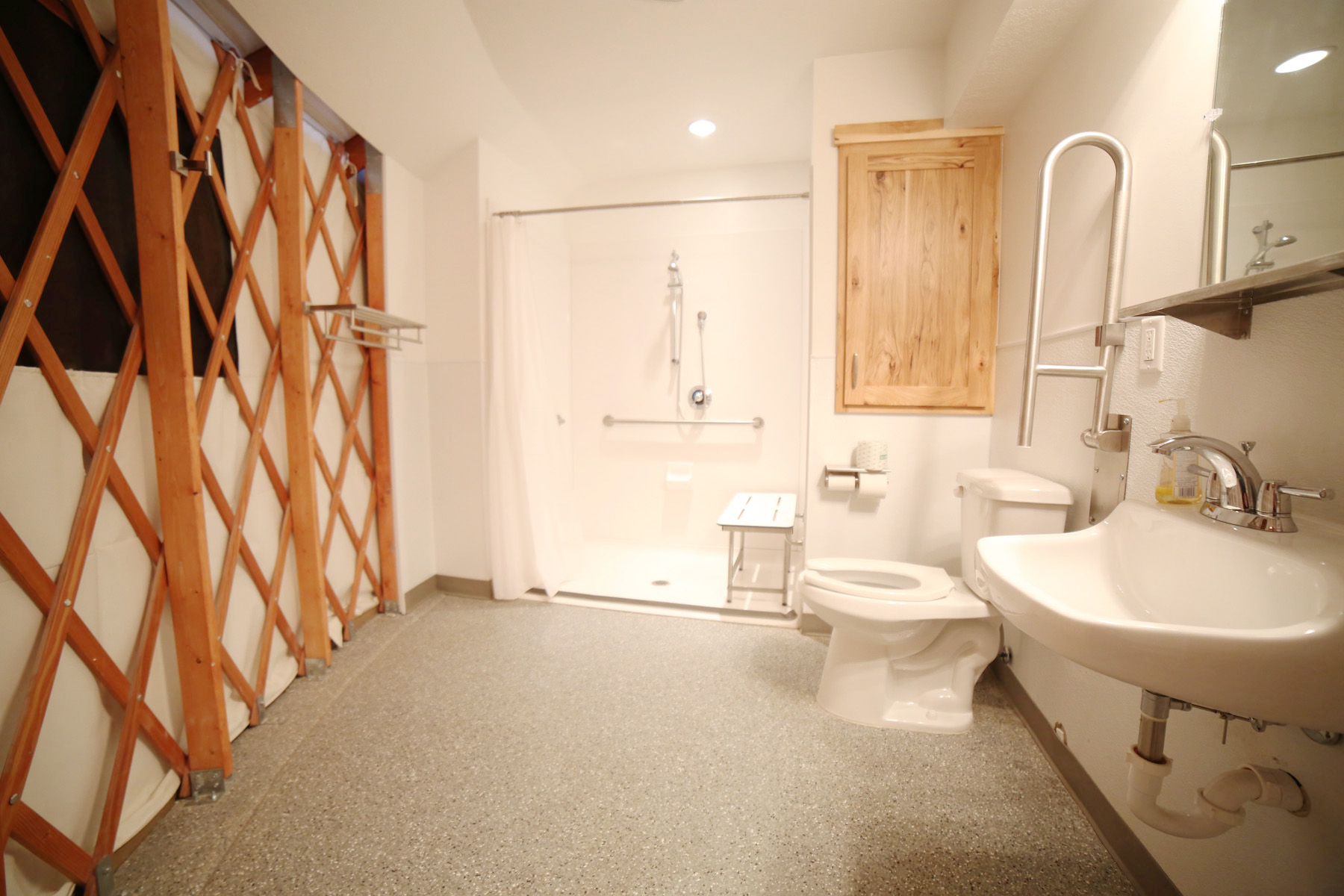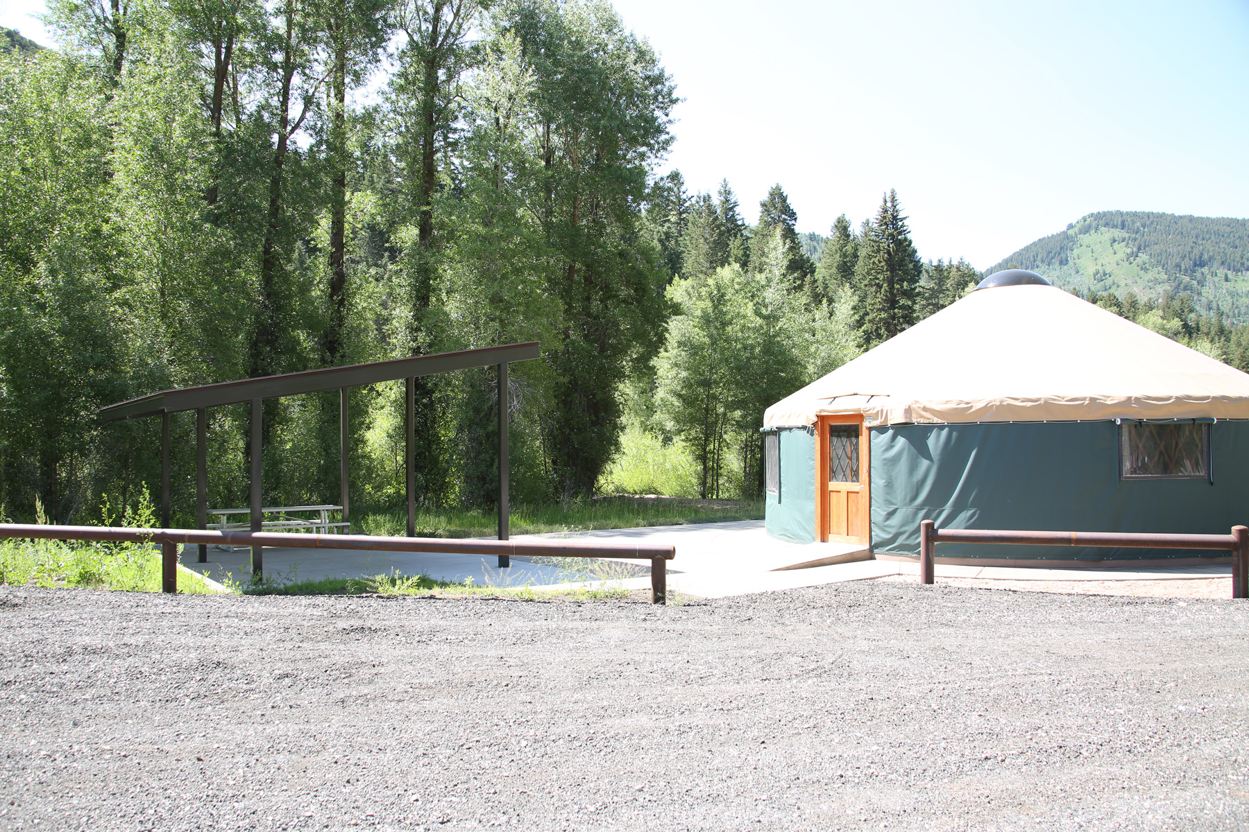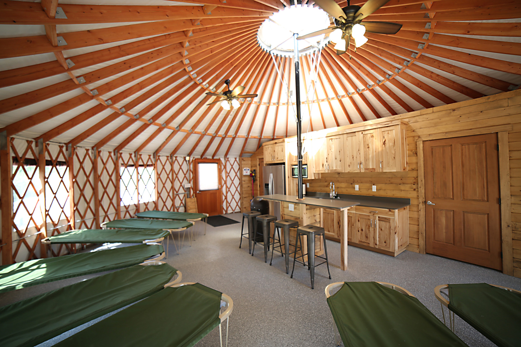 2 Side-by-side Yurts, 1 ADA Shower, 5 Restrooms, Picnic Tables, Hookups, Fire Pit, and Amphitheater. Great for large groups. Best access to the fishing pond and river trails.