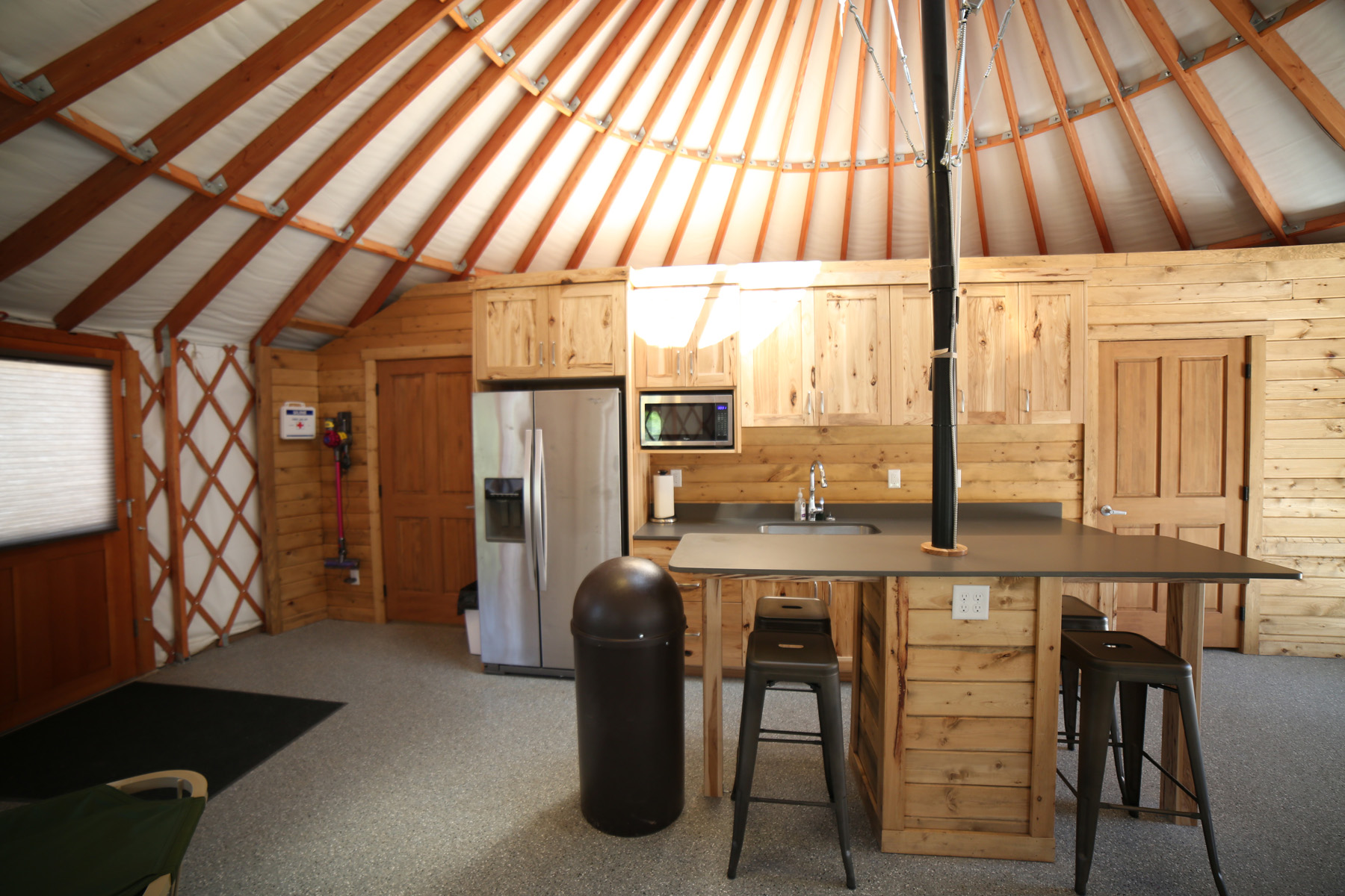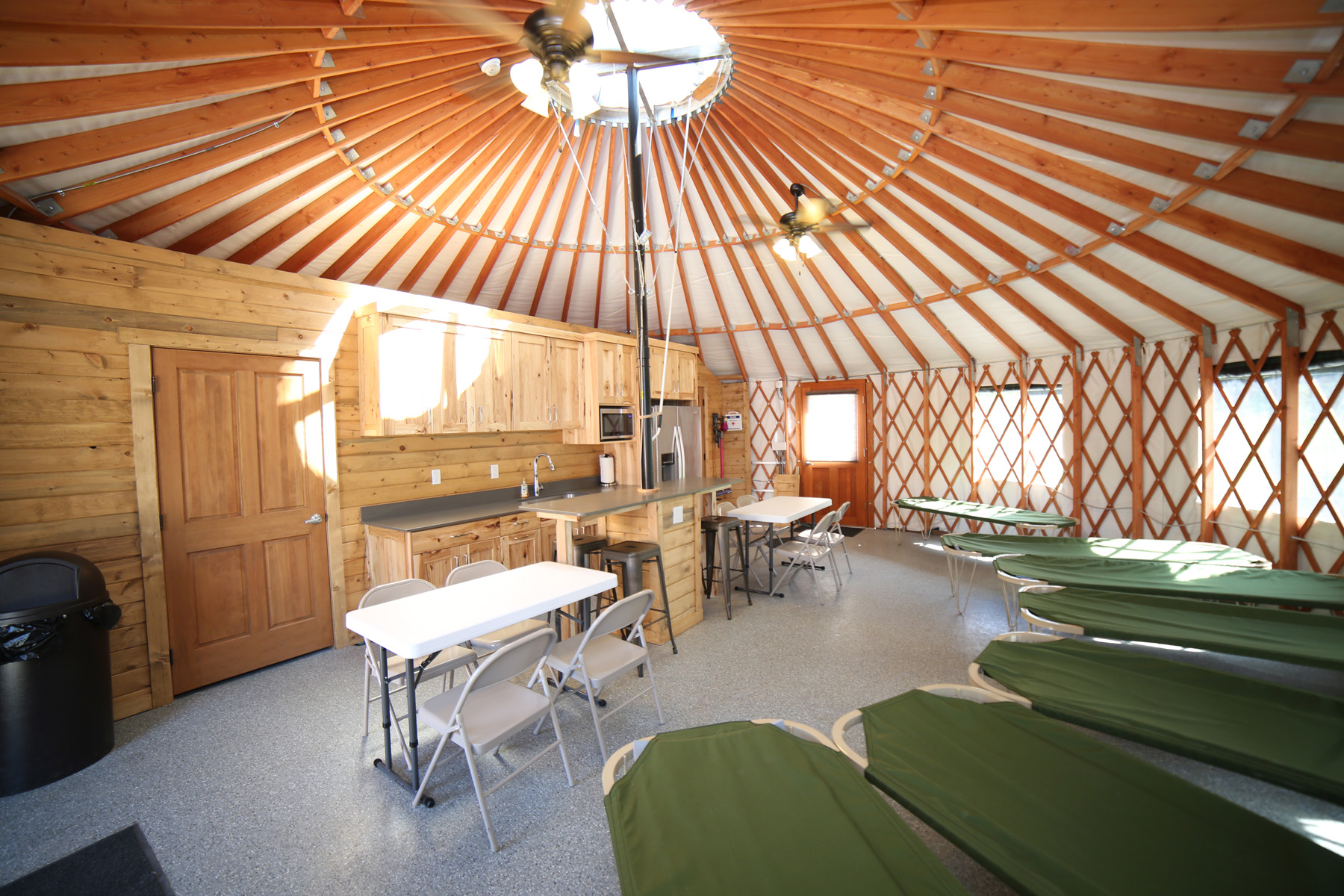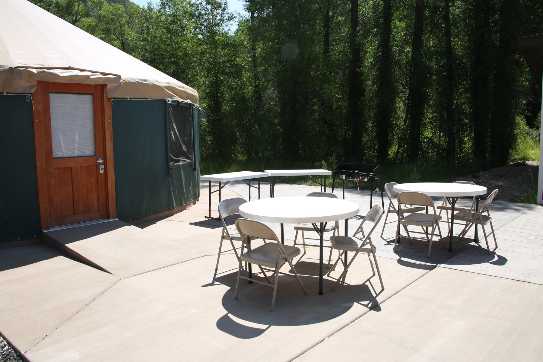 2 Side-by-side Yurts, 1 ADA Shower, 5 Restrooms, Picnic Tables, Hookups, Fire Pit, and Amphitheater. Great for large groups. Best access to the fishing pond and river trails.